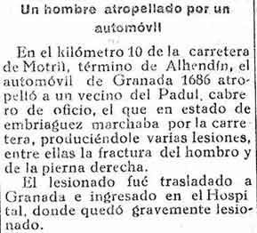 6 de febrero de 1931. En Alhendín es atropellado un cabrero