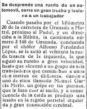 13 de marzo de 1931. Cerca del Padul a un automóvil se le