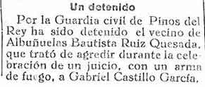 15 de marzo de 1931. Detenido un vecino de Albuñuelas por