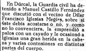 3 de marzo de 1931. Detención en Dúrcal por una riña