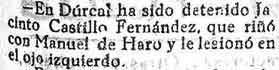13 de noviembre de 1931. Detención en Dúrcal por riña.