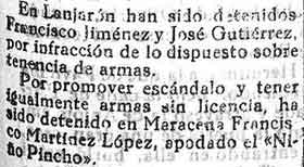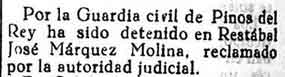 18 de noviembre de 1931. Detención en Padul por lesionar a