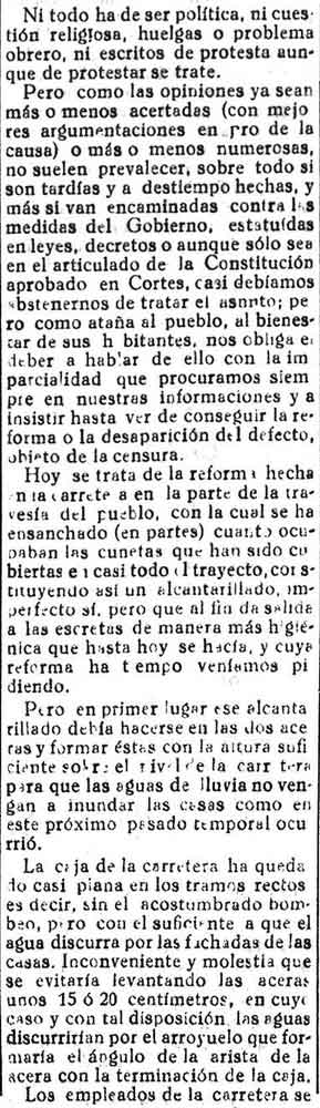 levantar aceras y el agua inunda las casas. Al salir de la plaza dirección