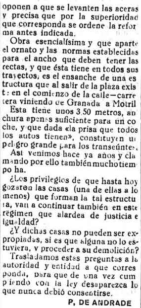 Motril la anchura de la carretera queda reducida a 3,50 metros