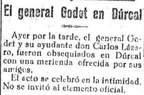 El general Godet y su ayudante Don Carlos Lázaro obsequiados en Dúrcal