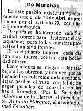 11 de noviembre de 1931. La sociedad obrera la Redención de