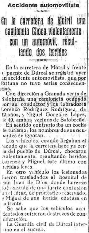 28 de noviembre de 1931. En el puente de Dúrcal una camioneta