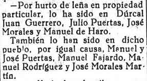 5 de noviembre de 1931. Detenciones en Dúrcal por hurto de