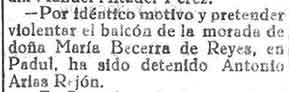 10 de febrero de 1933. Detención en Padul por violentar un
