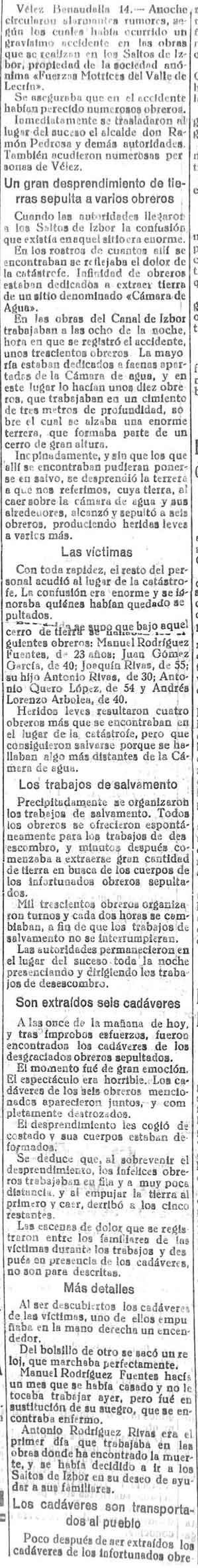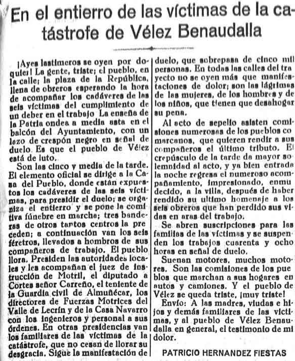 15 de febrero de 1933. Se entierran las víctimas en Vélez