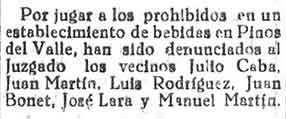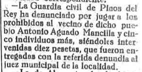 18 de febrero de 1933. Detenido en Pinos del Rey por jugar a