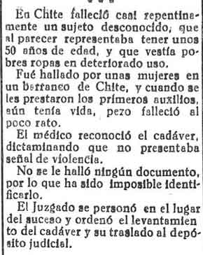 1 de febrero de 1933. fallece un honre encontrado en un