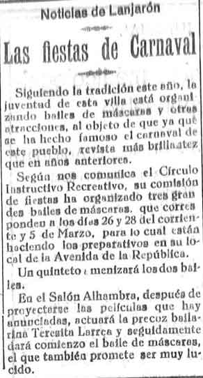 26 de febrero de 1933. Fiestas del carnaval en Lanjarón