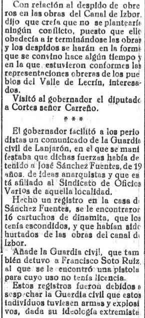 14 de febrero de 1933. Detenido en Dúrcal por sacar la
