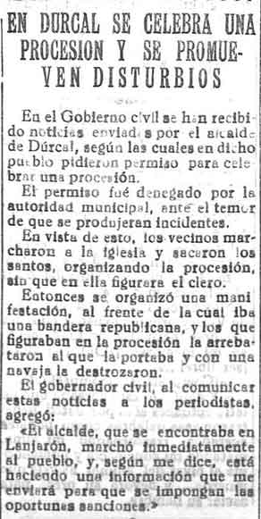 14 de febrero de 1933. Denuncias en Pinos del Valle por una