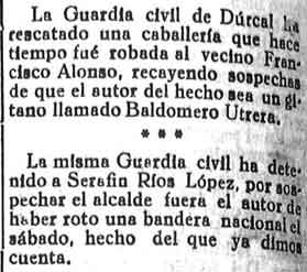 15 de febrero de 1933. Detenido en Dúrcal por agresión