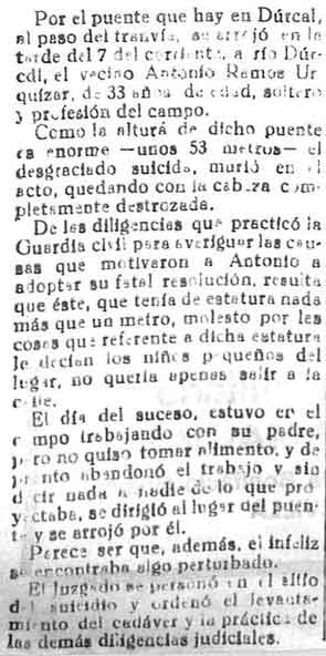 8 de febrero de 1933. Un vecino de Dúrcal se arroja por el