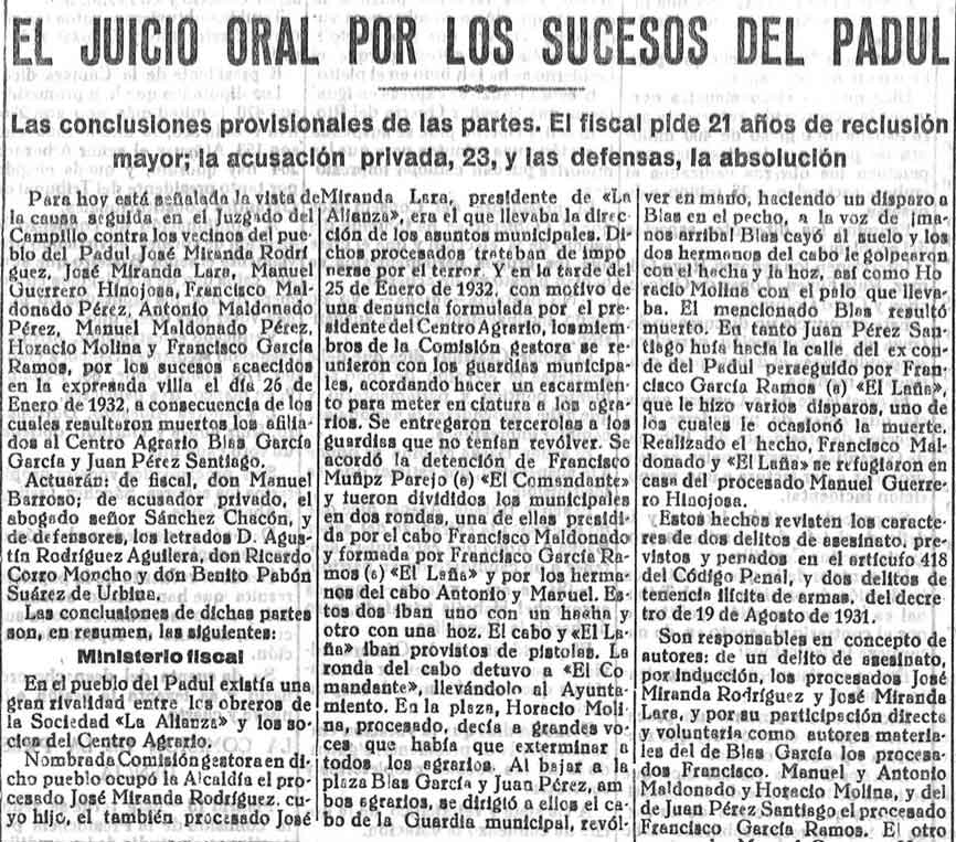14 de julio de 1933. Juicio oral por los sucesos del Padul
