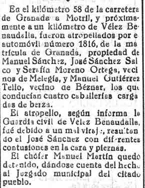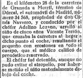 18 de julio de 1933. Un coche atropella a un niño en Dúrcal