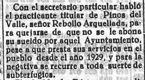 1 de julio de 1933. El secretario de Pinos del Valle se queja