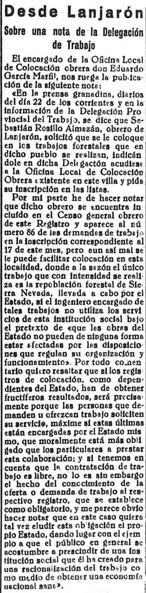 20 de julio de 1933. Noticias de Lanjarón: Comisión a Madrid.