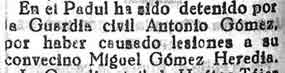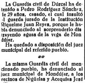 9 de julio de 1933. Detenido un vecino de Padul por dañar a