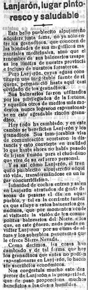 29 de julio de 1933. Lanjarón, lugar pintoresco y saludable