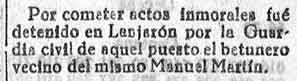 25 de julio de 1933. Detenido en Mondújar por insultar al