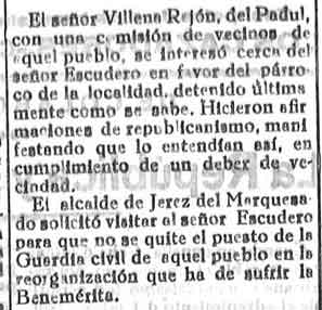 8 de julio de 1933. Detenido el juez municipal de Mondújar y