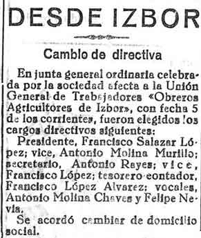 11 de junio de 1933. Elegida directiva de la UGT en Ízbor