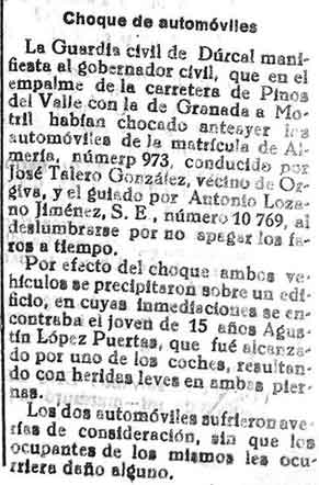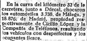 26 de junio de 1933. Choque de automóviles en Dúrcal.