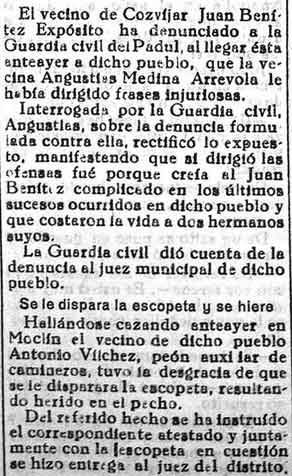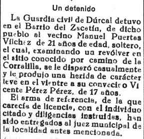 27 de mayo de 1933. Un vecino de Dúrcal hiere a otro cuando