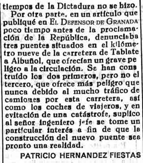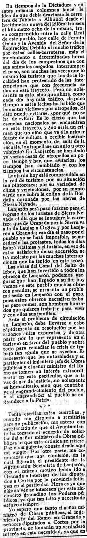 31 de mayo de 1933. Necesidad de unos trabajos en Lanjarón: