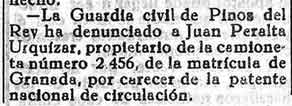 7 de mayo de 1933. Denunciado en Pinos del Rey por tener