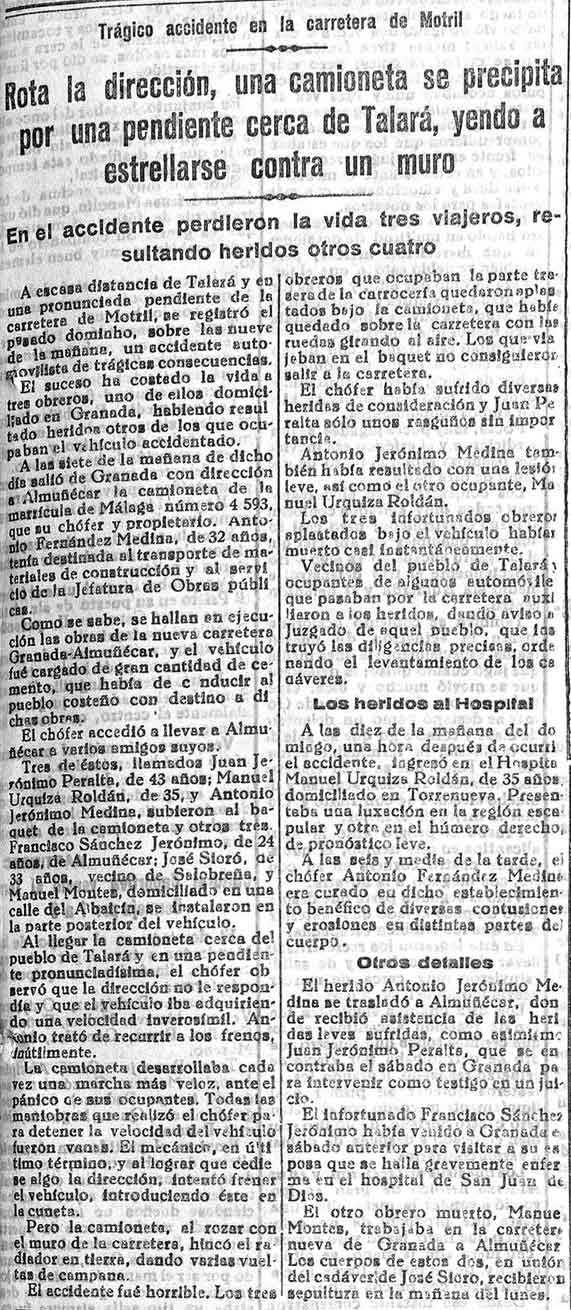 16 de octubre de 1933. Trágico accidente de una camioneta en