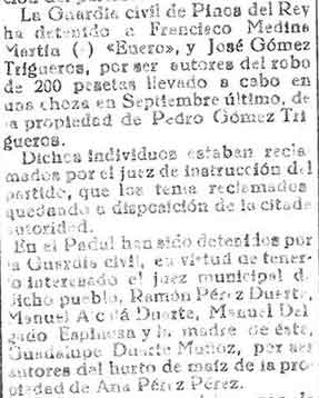 17 de octubre de 1933. Detenidos en Pinos del Rey por robo.