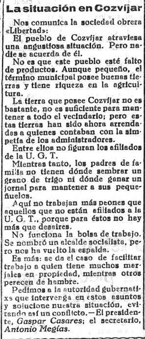 18 de octubre de 1933. Angustiosa situación de paro en