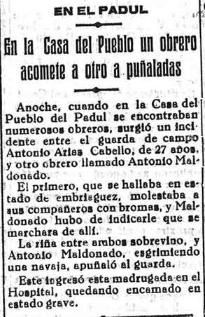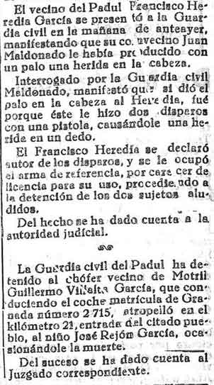 4 de octubre de 1933. Riña entre dos vecinos del Padul.