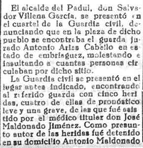 28 de octubre de 1933. Un guarda es apuñalado en el Padul