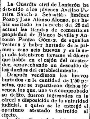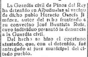 28 de octubre de 1933. Detenido en Albuñuelas por robo