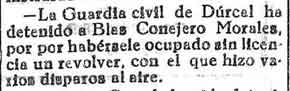 7 de octubre de 1933. Detenido en Dúrcal por utilizar un
