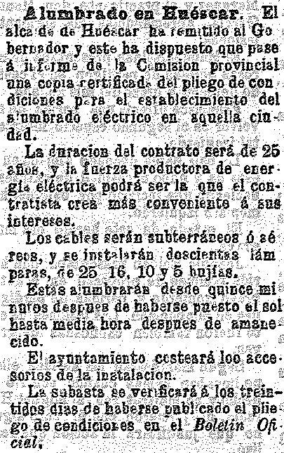 12 de agosto de 1902. Alumbrado eléctrico en Huéscar