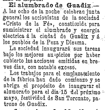 15 de diciembre de 1900. Preparando el suministro de electricidad a Guadix