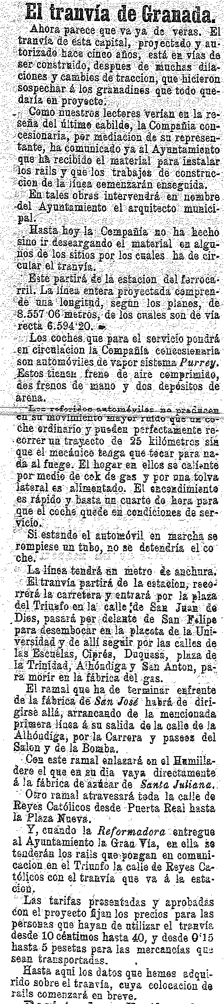 15 de enero de 1901. El tranvía de Granada parece que va de veras