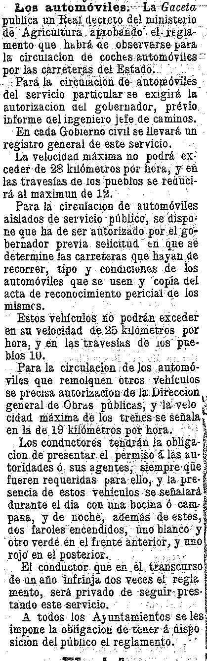 23 de septiembre de 1900. Reglamento para la circulación de automóviles