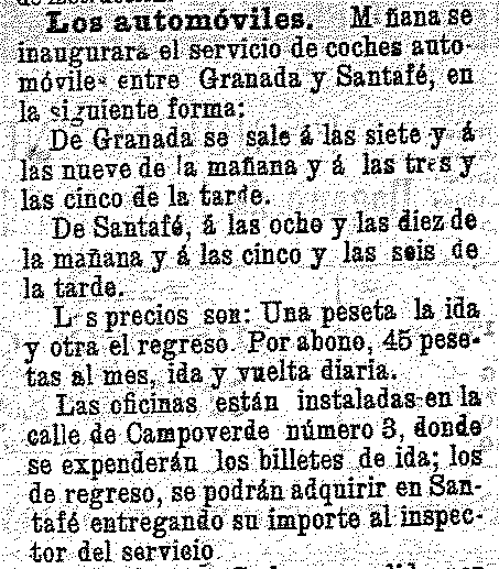 31 de enero de 19001. Servicio de automóviles entre Granada y Santa Fe