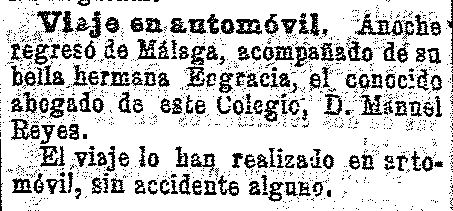 14 de diciembre de 1905. Viaje de Málaga a Granada en automóvil