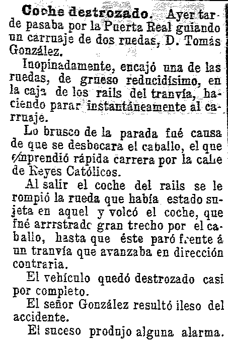 14 de julio de 1904. Las ruedas de los carruajes se rompen con los raíles