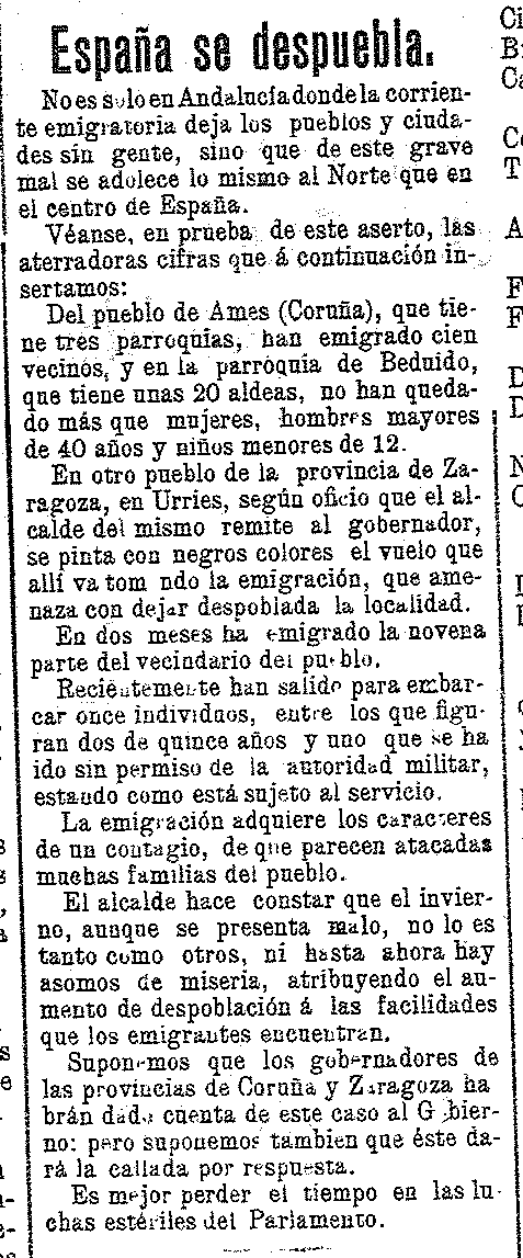 15 de diciembre 1904. La emigración. España se despuebla