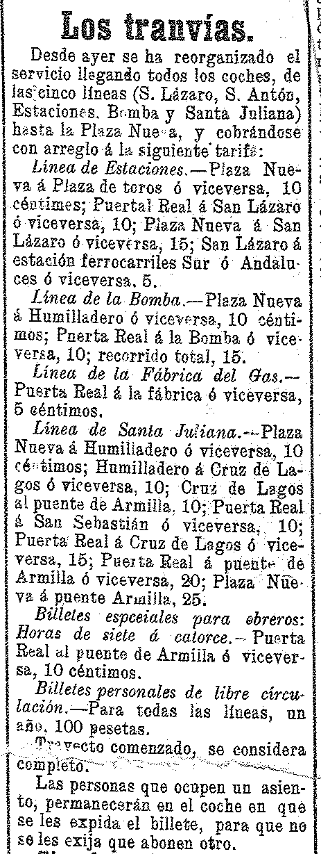 24 de diciembre de 1904. Líneas y precios de tranvías